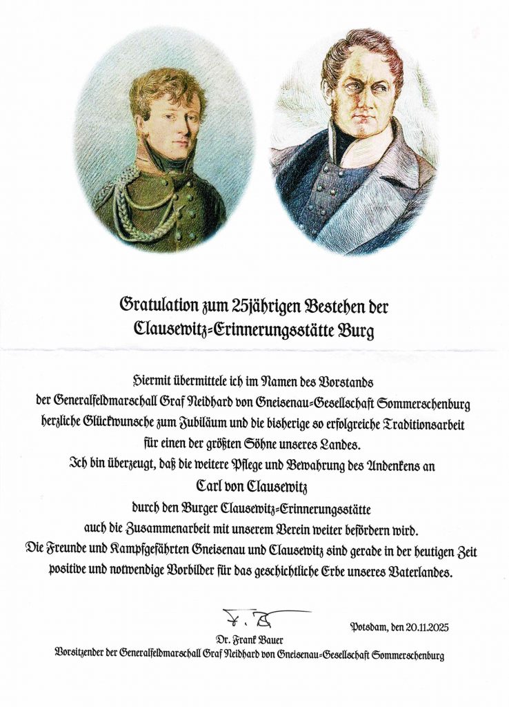 - Die Clausewitz-Erinnerungsstätte feierte am 11. Oktober 2025 ihr 25-jähriges Bestehen