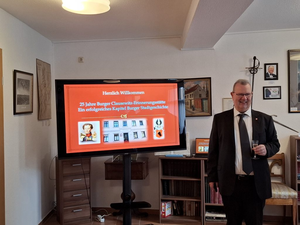 Am Samstag den 11.10 feierte die Clausewitz-Erinnerungsstätte, ein kulturelles museales Kleinod der Stadt Burg ihr 25-jähriges Bestehen und konnte zahlreiche Gäste in ihren Räumen begrüßen. Dr. Rolf-Reiner Zube, Leiter der Clausewitz-Erinnerungsstätte, hielt einen aussagekräftigen Rückblick auf diese 25 Jahre.