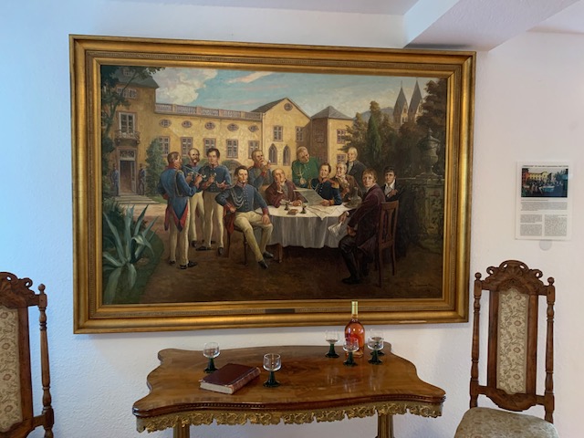 - dem Ölgemälde – die „Tafelrunde im von-der-Leyenschen Hof“. Carl von Clausewitz, Herr von und zum Stein und General Gneisenau sind im Mittelpunkt des Gemäldes dargestellt.